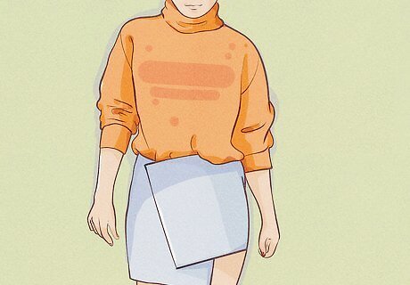 Add a sweater or a cardigan if you'll be cool. While you’ll probably get your heart rate up while you’re exercising, you might get a little chilly afterward if it’s cool outside. Add on a sweater or a cardigan to complement the feminine athletic look of a skort. You can tie the arms of the sweater around your shoulders or your waist if you need to take it off.