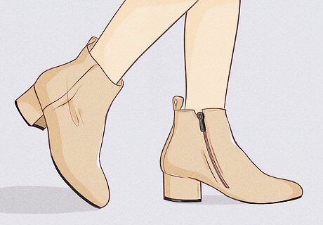 Toss on ankle boots or edgy heels to toughen up your style. If you have a rock-n-roll attitude, ankle boots and heels are a great way to show it off. Depending on the rest of your outfit, you might wear something more casual, like a hiking boot, or you can glam up your outfit with wedges. However, dressier styles can be harder to pull off with a skort. For a night out with friends, you might wear a sparkly tank top, a short black Zara-style skort, and a pair of tough-but-feminine black ankle boots, for instance. Reader Poll: we asked 1784 wikiHow readers, and 72% agreed that the best shoes to wear with skirts are heels, so chances are, they'd look great with a skort too.