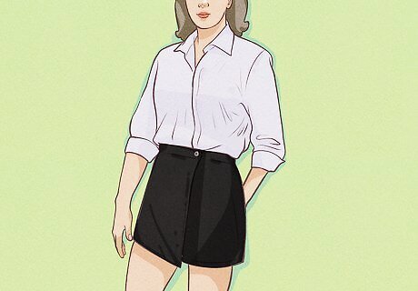 Opt for a tucked-in blouse for a slightly dressier look. If you want to aim for dressy-casual, like for a lunch date or a day trip, tuck a flowy blouse into a skort. Then, toss on your favorite pair of cute sandals, flats, or wedges, grab a pair of sunglasses, and you’re ready to go! Try finding a blouse in a bold, vibrant print, then pair it with a neutral skort to balance it out. Or if you prefer, you could opt for a skort in a bold color, like mustard yellow or ruby red. Sheer blouses are especially flattering because they show off your figure underneath. Of course, you can wear a cami underneath the top if you don’t want to show too much skin. Try this with a wraparound skort for a sophisticated look.