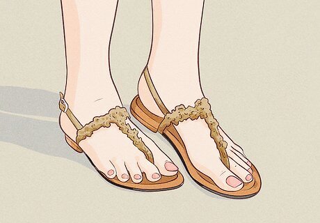 Opt for sandals or flats for a casual look. If you’re heading off for a daytime adventure and you want to be ready for anything, toss on a pair of flats or comfortable sandals with your skort. This will keep your style casual, but you’ll still look put-together. For example, a sheer, peach-colored blouse tucked into a khaki skort with a pair of brown sandals and gold sunglasses for a sun-kissed outfit perfect for the summertime. A pair of flats is the perfect way to add a dash of style to a simple tee-and-skort combo.