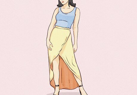 Choose a breezy top and a long skort to give off beachy vibes. Some skorts are made with a pair of short shorts and a longer skirt. The skirt might wrap all the way around, or it might be slightly open in the front, similar to a sarong. Either way, the best way to wear a skort like this is with a flowy blouse or tank top. Add on a sun hat and a pair of comfy wedge sandals and you’ll be ready for the beach, the pool, or even just a warm day running errands around town. Consider wearing your top tucked in or tied at the waist to show off your figure. Try a silky tank top or a lightweight button-down shirt that’s tied at the waist.