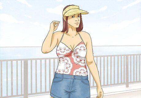 A visor can be for both fashion and function. Visors look great with bathing suits. If you’re wearing a one-piece or a bikini, slip on some high-waisted shorts when you’re lounging poolside or on the beach. Put on a visor to help keep the sun out of your eyes and add a little extra something to your look. If you’ve got a straw visor, it’ll really add to your beachy vibe.