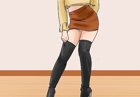 Pair a leather mini skirt with Doc Martens for a grunge look. In the 90s, Doc Martens were synonymous with grunge. To recreate the iconic look, choose a black pair of Doc Marten boots and pair them with a leather mini skirt and a studded belt. Add a black blouse for a striking monochromatic look, or add a ripped tee for a more low-key vibe.