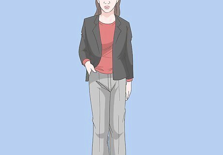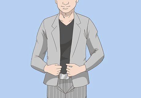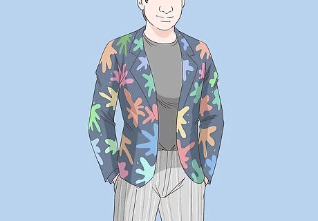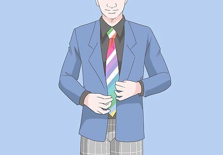 Pair a gray shirt with a colorful blazer that makes a statement. Letting your jacket take the lead is a bold move that'll make you look cool and confident. Choose a jacket that's a single color so it doesn’t look too busy. Wear a gray shirt underneath (close to one of the shades in the plaid) so the color of the blazer pops. Make sure your blazer fits well—the shoulder seams should draw a straight line up from your armpit. Any tightness or bunching at the shoulders means it's too big or too small. The sleeves should come down to just below your wrists.