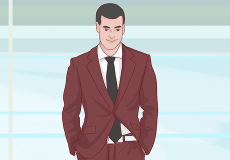 Choose a suit jacket in the same color. Pairing your maroon pants with a maroon blazer in a similar shade creates the effect of wearing a suit. Look for a jacket in a similar material to your pants for the most cohesive look. If you’re feeling adventurous, pair your pants with a suit jacket in the same color palette, but not the exact same color, for example lavender or light blue.