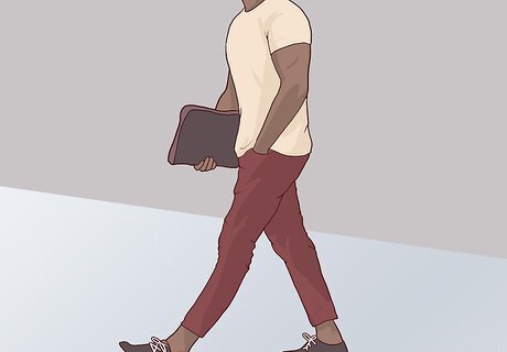 Play up the collegiate vibe of maroon. Maroon is often a school color of universities and colleges. To keep your maroon pants looking casual and young, pair them with a black varsity-style jacket or a casual grey athletic T-shirt. A striped rugby-style shirt would also be a nice complement for an everyday look.