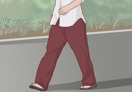Roll the cuff. Rolling your maroon pants is a trendy, casual look that can show off your cool summer shoes. To get a nice tight roll on your pants, cuff the bottom once, pinch an inch of your roll and push it towards the center to tighten the cuff, then roll again. Aim for a roll that exposes the ankle but not too much higher. Use this technique to show off wedges, loafers or other interesting shoes without socks.