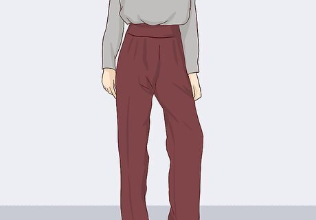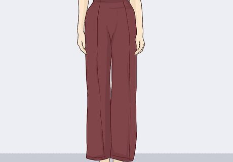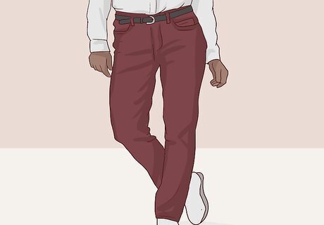 Select trouser-cut maroon pants for a business look. Trouser-cut pants are a good choice for business or formal settings, such as the office or church. You can wear your trousers with a pleat or cuff if you like that look, as well.