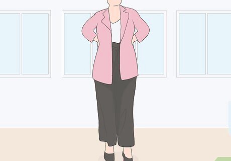 Keep your pants business casual with a pair of ballet flats. If your office is more of the casual type or you are on your feet all day, you might not want to walk around in heels. Put on a pair of ballet flats to keep your outfit professional while maintaining comfort.Tip: Ballet flats are a great staple to have in your wardrobe.