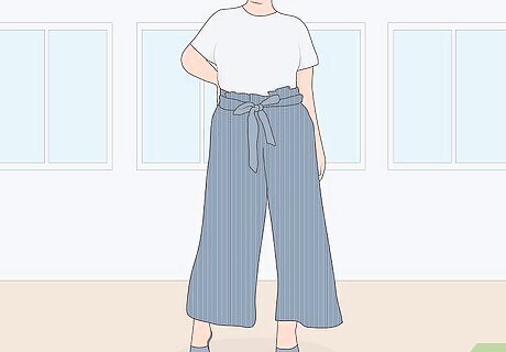 Choose pants that fit snugly through your thigh. Pants like these are usually tighter up top and wide in the leg. Make sure the upper part of the pants hug your figure until about mid-thigh and then billow out around your legs. Some paper bag pants are skinny pants that conform to your leg. If your paper bag pants are this style, make sure they hug your legs all the way down and don’t billow out anywhere.