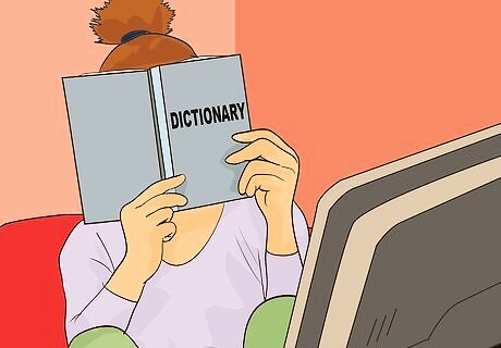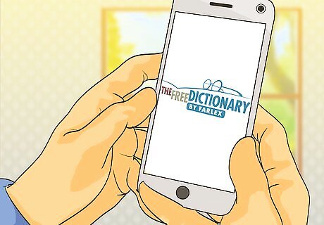 Keep a dictionary handy. We encounter new words every day through reading, conversations, TV, and music. By keeping a dictionary and/or thesaurus handy, you will be able to instantly look up new words that you encounter throughout the day. Use whatever version you prefer, i.e., print, online, or electronic. When you encounter a new word, look up its pronunciation and meaning(s). Then, go to the thesaurus and learn similar words and phrases, as well as antonyms. Great apps that provide these services are the Free Dictionary app, the Dictionary.com app, and the Thesaurus.com app.