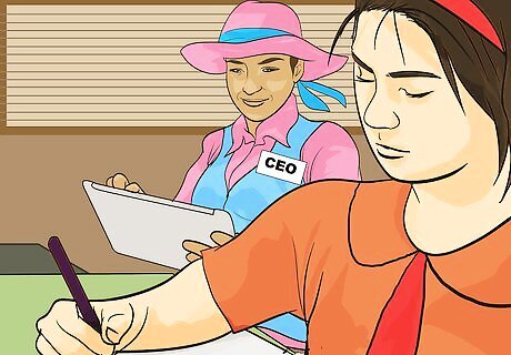 Think outside of the box. To think outside of the box is to view things from a different perspective. This means stepping outside of your comfort zone when faced with a challenge. Instead of relying on tried and tested methods, choose a different method. By stepping into another role, you can view something from a different perspective. For example, pretend you are a person from a different time period, like the 1940s, and answer the prompt from this perspective. Try reframing things in order to view something from a different perspective. For example, instead of looking at the glass half empty, look at the glass half full.