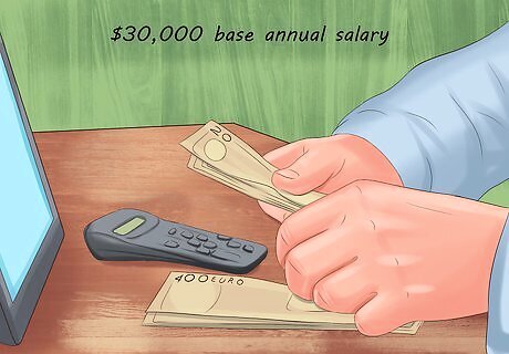 Establish your base salary. Salaried employees work under a contract for a set amount of pay over a set period of time, without factoring in the number of hours worked (unless, possibly, overtime is involved). Typically, your salary refers to your base pay amount for a year. As an example, let’s say you earn a $30,000 base annual salary.