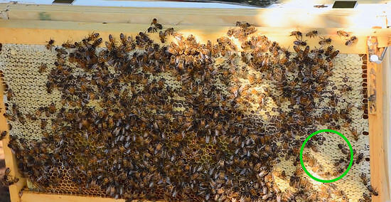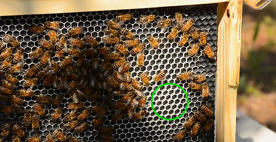 Move downward into the brood box. Look for the queen and sealed brood, and make sure that you have ample frames for the colony to work with. Check on any abnormalities and pests, such as mites or moths.