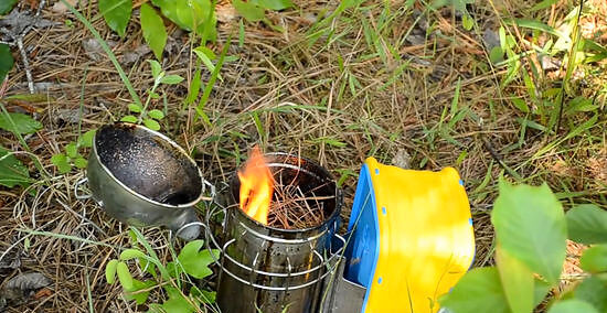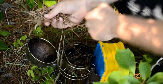 Fill your smoker with your chosen burning material. Common choices are burlap, pine needles, corncobs, wood pellets, dried grass, or mulch. Smoking bees calms them by causing them to gorge on honey. The smoke masks the alarm signal from the guard bees.