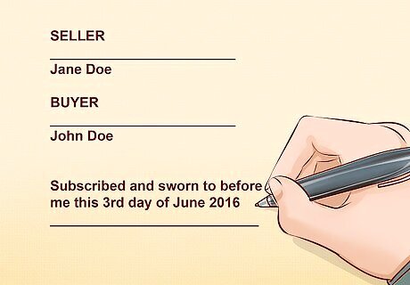 Include a signature block. At the end of the contract, there should be a place for both buyer and seller to print and sign their names. Some parties have a notary public present at the signing of the contract in order to witness their signatures. A notary public is usually available at your local bank, courthouse, or title insurance company. However, most states do not require that a notary public notarize a real estate contract.