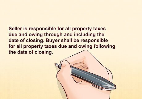 Describe how property taxes will be paid by the parties. In many cases, property taxes are prorated between the parties as of the date of closing. Alternately, the seller may agree to pay certain property tax installments before the buyer becomes responsible for paying any taxes. If so, the contract should be very specific about which installments will be paid by whom, as well as the due date of those payments. For example, a typical property tax provision in a FSBO contract might read: "Seller is responsible for all property taxes due and owing through and including the date of closing. Buyer shall be responsible for all property taxes due and owing following the date of closing." If the tax payment deadline falls at or near the time that the negotiations are taking place, then the parties may agree to prorate the taxes that are due. For instance, the Seller might be responsible for the portion of unpaid taxes that are due and owing up to and including the closing date, with the Buyer being responsible for the balance of the taxes that becomes due after the closing date. In a case of prorated taxes, the contract provision might read "All property taxes, as determined on the date of closing, shall be prorated between Buyer and Seller as of the date of delivery of this deed."