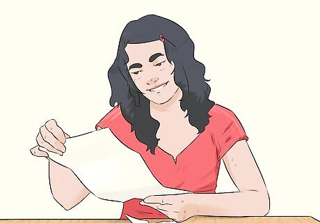 Check the note for spelling, grammar, and punctuation. Once you have finished writing the card, read it over and check for any errors. If you are handwriting the card, you may write out a rough draft first and check it over before you write it on the actual thank you card. If you are creating the card online, you can edit it for errors easily before you send it out. Try reading the note backwards to check for spelling errors. Identify all the punctuation used in the note and make it sure it is correct. Double check the spelling of the person’s name in the note to ensure it is correct.