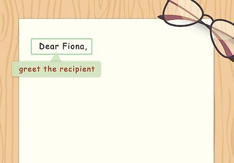 Greet the recipient. Start the note by using a greeting like “Dear” or “To,” followed by the person’s name. If you have a close relationship with the recipient, you may feel comfortable using their first name in the greeting. If you have a more formal relationship with them, you may use their full name. For example, you may write “Dear Fiona,” or “To Fiona Lee.” Always check the spelling of the person’s name before you write out the greeting. You do not want to get their name wrong in the card.