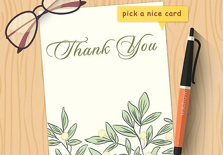 Pick the type of card you are going to use. You may opt for a physical thank you card that has a simple image or text that reads “Thank You” on the front of the card. You can also use personalized stationery with your name or a personal design on it to write the card. A handwritten card can add an element of intimacy to the note. Another option is to use an online thank you card, where you use an online program to design and type out the card. It will then be sent to the person’s email. Sites like Some Ecards, American Greetings, and Punchbowl all offer free online cards.