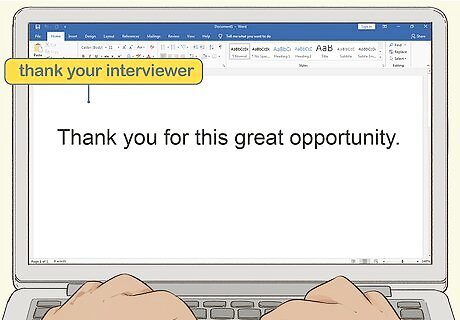 Thank your interviewer personally. If the person who extended the job offer is the same person who interviewed you, extend them a personal thank you. Write, “Thank you for making me feel welcomed in the interview. I appreciated your warmth, and enjoyed discussing books, baseball, and the publishing world with you.” If the person you're addressing did not interview you, just thank them generally. “Thank you for this great opportunity.” You can also mention the name of the person who interviewed you, if it's a small company, like "I really enjoyed talking with Dr. Abrams during my interview."