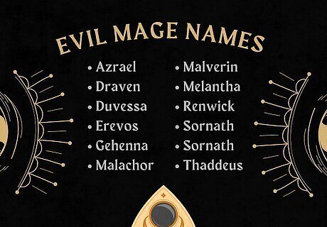 These names are absolutely wicked. Evil characters are simply so fun to play and write, and their depth all starts with a name. Here are some of our favorite evil mage names that have a hint of darkness and malice: Azrael Draven Duvessa Erevos Gehenna Malachor Malverin Melantha Renwick Sornath Sornath Thaddeus Thorne Umbryx Vell Vorath Zalthun Looking for a more specific name? Try our Character Name Generator!