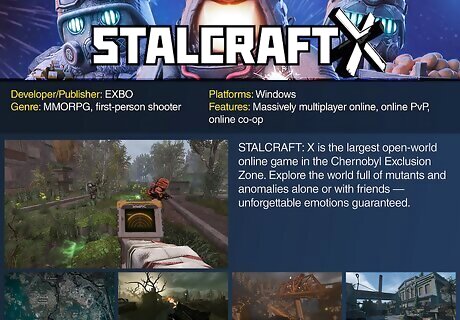STALCRAFT: X In STALCRAFT: X, you can explore the Chernobyl Exclusion Zone to find resources and artefacts. You'll be playing alongside other players that can be friends or foes, as well as NPCs and mutants. While the game is free to play, there is the ability to speed up progression by paying money. You can also purchase cosmetics from the cash shop. Developer/Publisher: EXBO Genre: MMORPG, first-person shooter Platforms: Windows Features: Massively multiplayer online, online PvP, online co-op