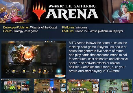 Magic: The Gathering Arena Magic: The Gathering Arena brings the fun of the MTG tabletop card game to your computer. Build decks with your favorite cards, then battle other players from around the world. While this game does have microtransactions to get more cards, it's also considered a great way to learn how to play MTG if you're new to the game. Developer/Publisher: Wizards of the Coast Genre: Strategy, card game Platforms: Windows Features: Online PvP, cross-platform multiplayer