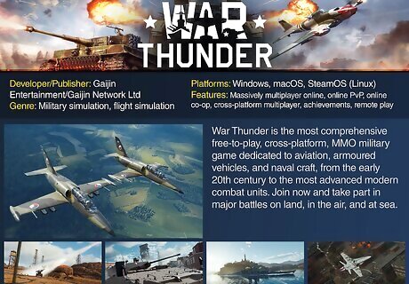 War Thunder If you're a fan of military strategy, give War Thunder a try. This game focuses on simulating military battles on land, at sea, and in the air. Participate in recreations of historical battles from the 20th century, including World War II and the Korean War. While this game is entirely free-to-play, you can spend money to have access to more military vehicles. Developer/Publisher: Gaijin Entertainment/Gaijin Network Ltd Genre: Military simulation, flight simulation Platforms: Windows, macOS, SteamOS (Linux) Features: Massively multiplayer online, online PvP, online co-op, cross-platform multiplayer, achievements, remote play