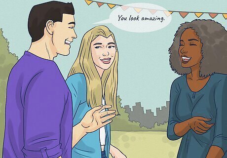 Compliment them. American icon Mae West once said, “Flattery will get you everywhere,” and she may have been on to something! If you open up a conversation with flattery, two things are important: be sincere and react accordingly to the person’s reaction. Although most people enjoy and appreciate compliments, some may feel uncomfortable. If this person is someone you’d like to date, lead with confidence, and don’t be afraid to hint at your true feelings. Here’s what to say: “You look amazing.” “I love your outfit.” “You definitely stand out from the crowd.” “Well, aren’t you a sight for sore eyes!” “It’s nice to see you!” “I was hoping you’d be here!” “Your hair and makeup look flawless.” “I love that scent you're wearing—what is it?” “You’re the most beautiful [girl/boy/etc] here.” “You have such a warm energy.” “Your smile is contagious!” “You’ve brought such a thoughtful gift!”